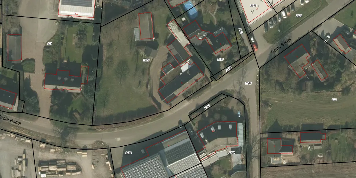 Het perceel waarop Grote Bottel 6 staat heeft een oppervlakte van 3215 m². Dit is een zeer groot perceel. De perceeloppervlakte wordt geregistreerd door het Kadaster. Gedetailleerde informatie over de maten van dit perceel kunt u vinden in het rapport Kadastrale kaart met maatvoering van Grote Bottel 6.