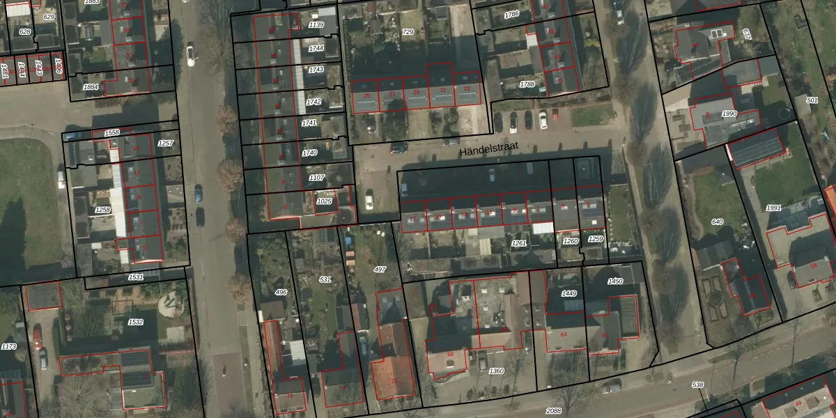 Händelstraat 17 is gelegen op kadastraal perceel DNE00M1261. Deze kadastrale aanduiding is uniek en wordt gebruikt door het Kadaster om eigendomsrechten en andere zakelijke rechten vast te leggen. Het perceel maakt onderdeel uit van de kadastrale gemeente Deurne.