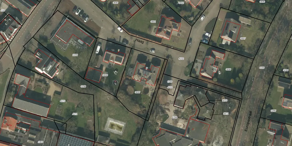 Haag 2 is gelegen op kadastraal perceel DNE00L3695. Deze kadastrale aanduiding is uniek en wordt gebruikt door het Kadaster om eigendomsrechten en andere zakelijke rechten vast te leggen. Het perceel maakt onderdeel uit van de kadastrale gemeente Deurne.