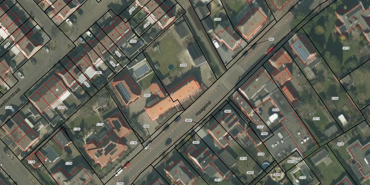 Het perceel waarop Haageind 17 staat heeft een oppervlakte van 1066 m². Dit is een zeer groot perceel. De perceeloppervlakte wordt geregistreerd door het Kadaster. Gedetailleerde informatie over de maten van dit perceel kunt u vinden in het rapport Kadastrale kaart met maatvoering van Haageind 17.