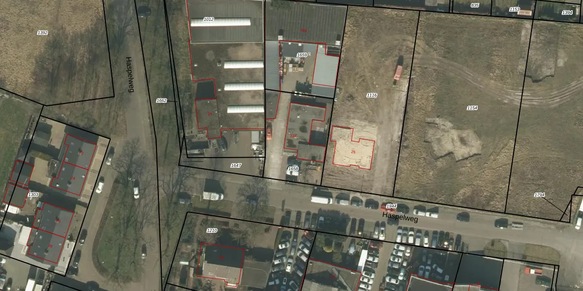 Het perceel waarop Haspelweg 23 staat heeft een oppervlakte van 647 m². Dit is een groot perceel. De perceeloppervlakte wordt geregistreerd door het Kadaster. Gedetailleerde informatie over de maten van dit perceel kunt u vinden in het rapport Kadastrale kaart met maatvoering van Haspelweg 23.