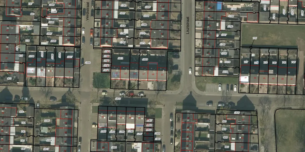 Het perceel waarop Haydnstraat 19 staat heeft een oppervlakte van 500 m². Dit is een groot perceel. De perceeloppervlakte wordt geregistreerd door het Kadaster. Gedetailleerde informatie over de maten van dit perceel kunt u vinden in het rapport Kadastrale kaart met maatvoering van Haydnstraat 19.