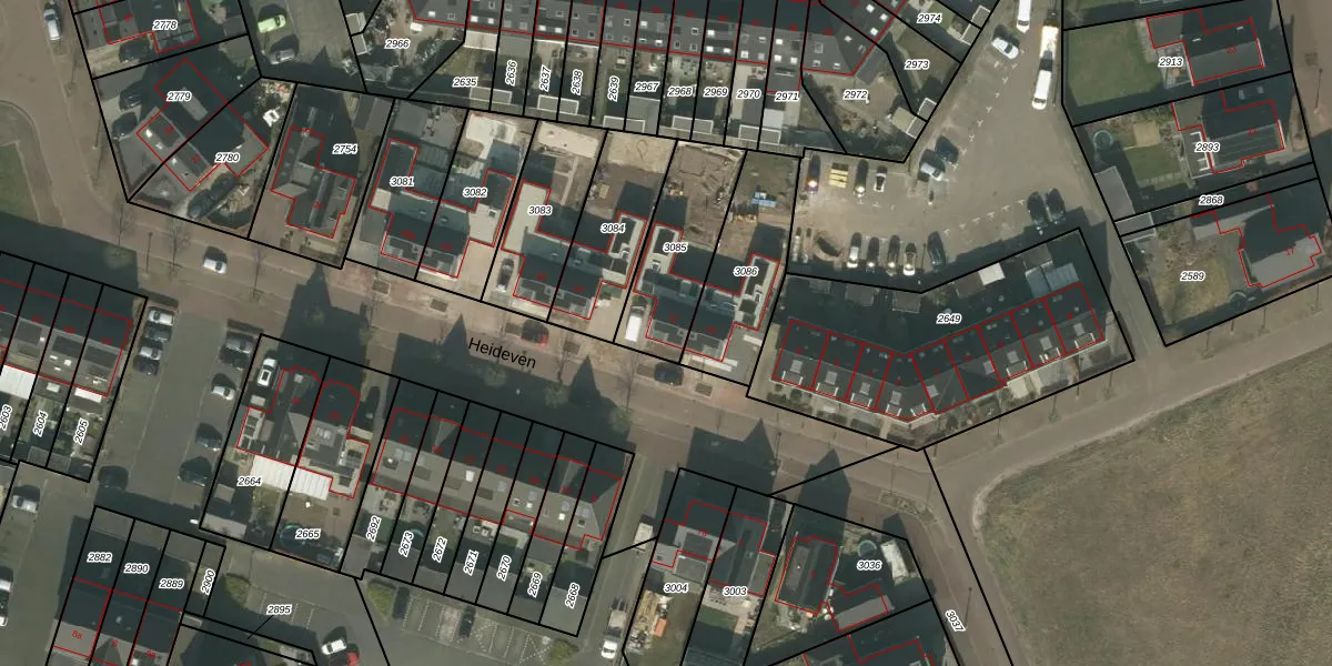 Het perceel waarop Heideven 12 staat heeft een oppervlakte van 343 m². Dit is een groot perceel. De perceeloppervlakte wordt geregistreerd door het Kadaster. Gedetailleerde informatie over de maten van dit perceel kunt u vinden in het rapport Kadastrale kaart met maatvoering van Heideven 12.