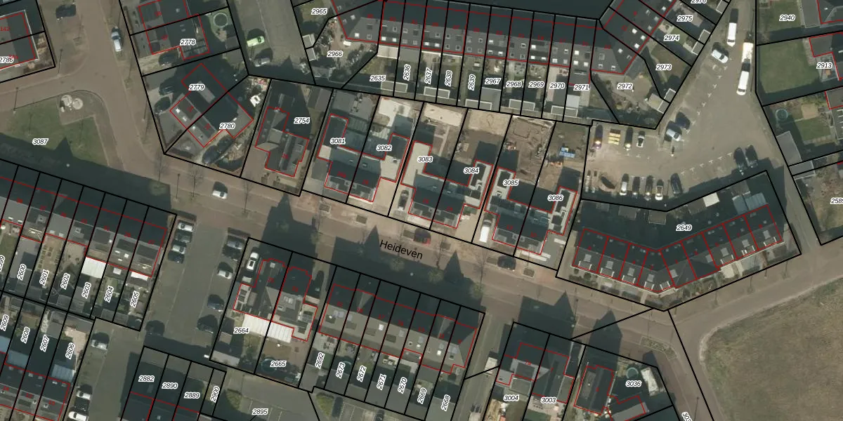 Het perceel waarop Heideven 16 staat heeft een oppervlakte van 307 m². Dit is een groot perceel. De perceeloppervlakte wordt geregistreerd door het Kadaster. Gedetailleerde informatie over de maten van dit perceel kunt u vinden in het rapport Kadastrale kaart met maatvoering van Heideven 16.