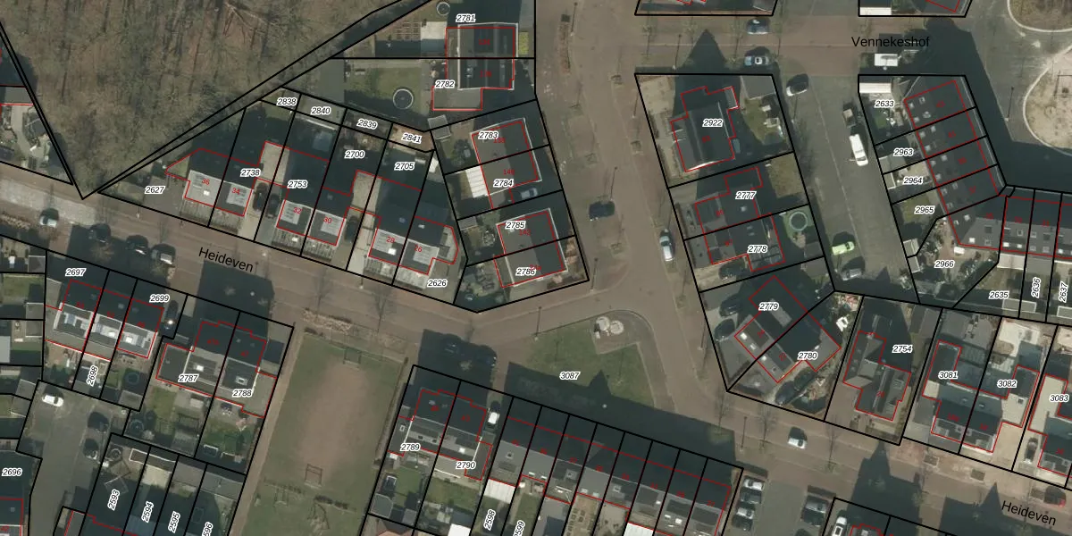 Heideven 24-a is gelegen op kadastraal perceel DNE00B2786. Deze kadastrale aanduiding is uniek en wordt gebruikt door het Kadaster om eigendomsrechten en andere zakelijke rechten vast te leggen. Het perceel maakt onderdeel uit van de kadastrale gemeente Deurne.