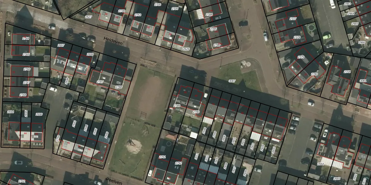 Het perceel waarop Heideven 45 staat heeft een oppervlakte van 270 m². Dit is een middelgroot perceel. De perceeloppervlakte wordt geregistreerd door het Kadaster. Gedetailleerde informatie over de maten van dit perceel kunt u vinden in het rapport Kadastrale kaart met maatvoering van Heideven 45.