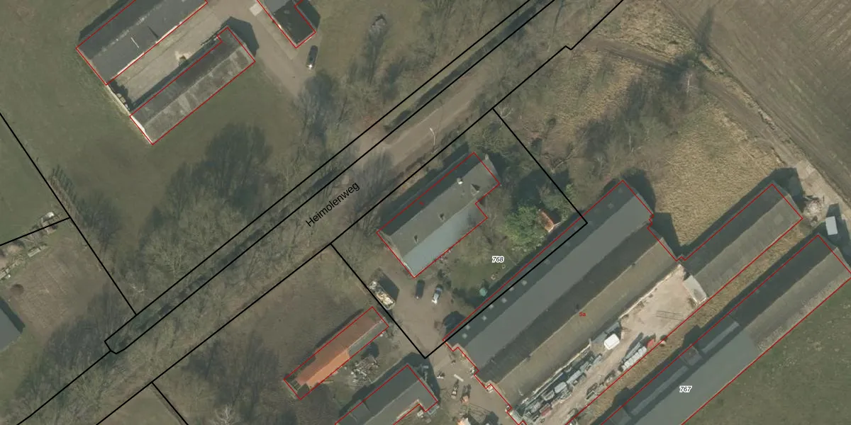 Heimolenweg 5 is gelegen op kadastraal perceel DNE00R768. Deze kadastrale aanduiding is uniek en wordt gebruikt door het Kadaster om eigendomsrechten en andere zakelijke rechten vast te leggen. Het perceel maakt onderdeel uit van de kadastrale gemeente Deurne.