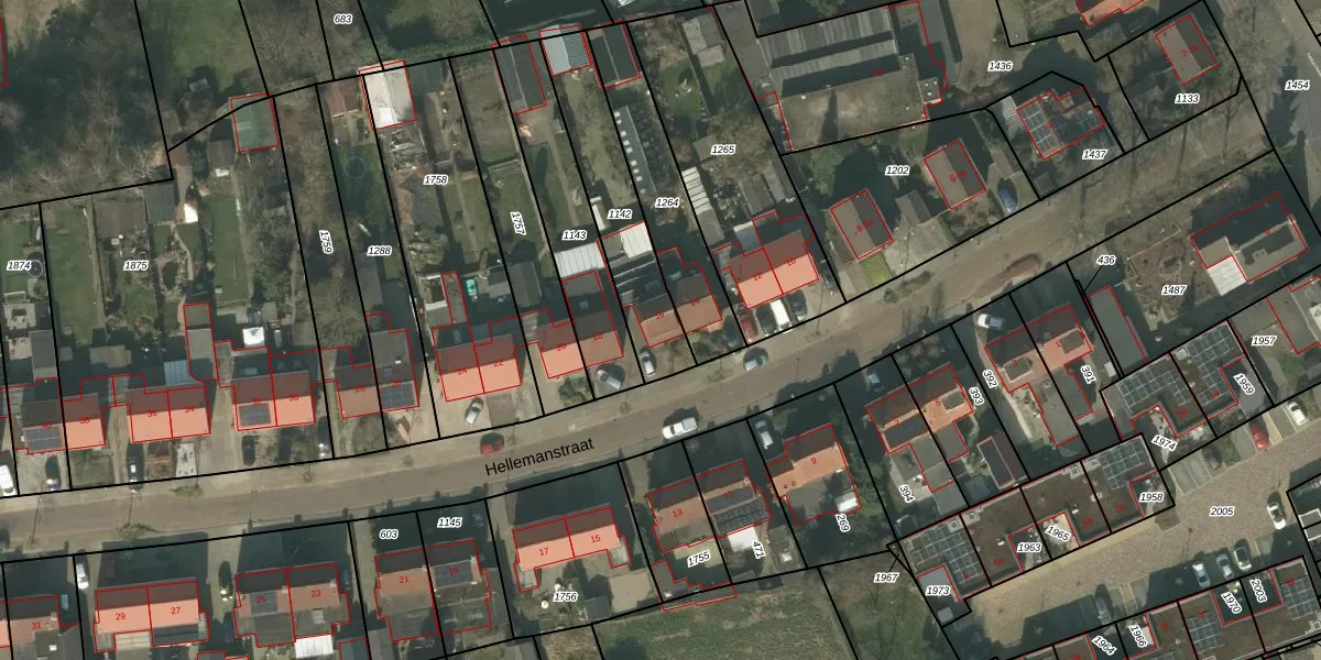 Het perceel waarop Hellemanstraat 16 staat heeft een oppervlakte van 405 m². Dit is een groot perceel. De perceeloppervlakte wordt geregistreerd door het Kadaster. Gedetailleerde informatie over de maten van dit perceel kunt u vinden in het rapport Kadastrale kaart met maatvoering van Hellemanstraat 16.