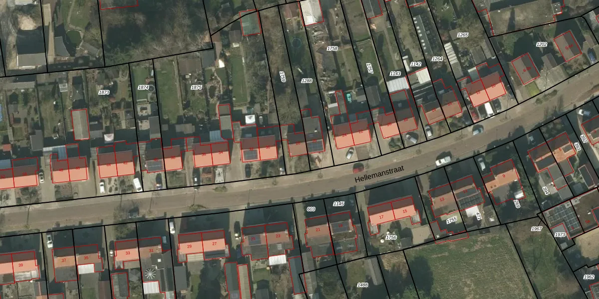 Gebruik de zoekbalk of klik op een perceel voor informatie over de adressen binnen dit perceel.