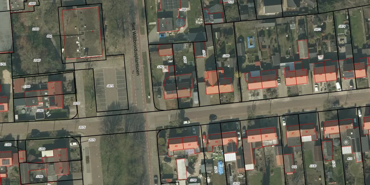 Gebruik de zoekbalk of klik op een perceel voor informatie over de adressen binnen dit perceel.