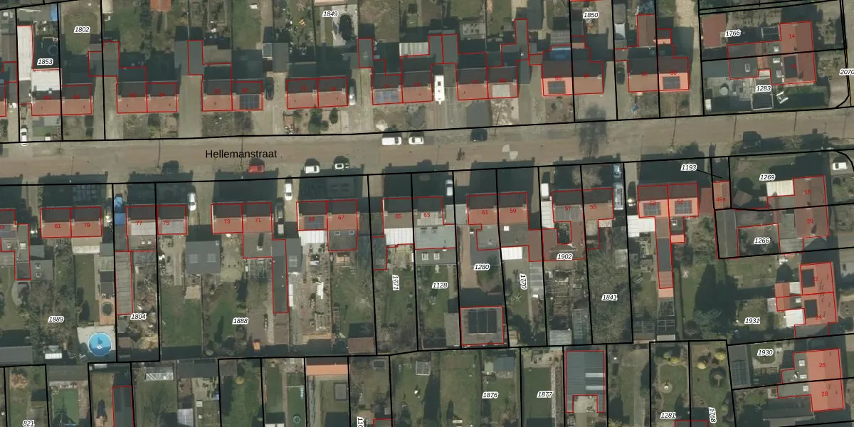 Het perceel waarop Hellemanstraat 63 staat heeft een oppervlakte van 417 m². Dit is een groot perceel. De perceeloppervlakte wordt geregistreerd door het Kadaster. Gedetailleerde informatie over de maten van dit perceel kunt u vinden in het rapport Kadastrale kaart met maatvoering van Hellemanstraat 63.