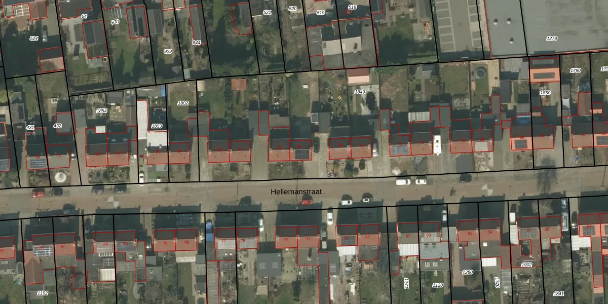 Het perceel waarop Hellemanstraat 80 staat heeft een oppervlakte van 3914 m². Dit is een zeer groot perceel. De perceeloppervlakte wordt geregistreerd door het Kadaster. Gedetailleerde informatie over de maten van dit perceel kunt u vinden in het rapport Kadastrale kaart met maatvoering van Hellemanstraat 80.