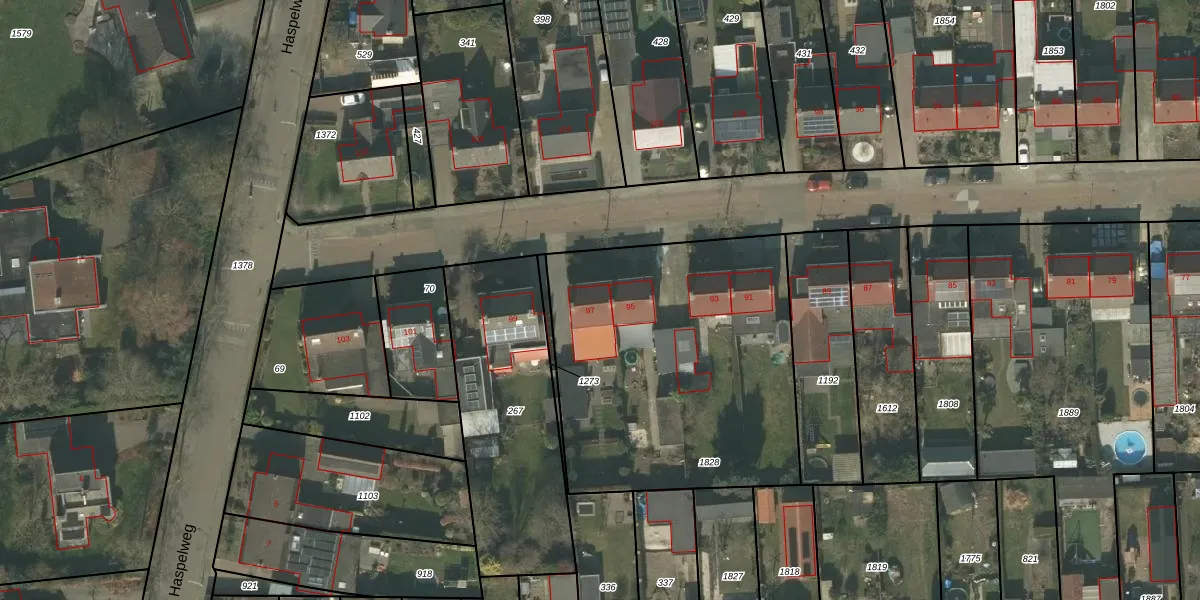 Het perceel waarop Hellemanstraat 97 staat heeft een oppervlakte van 1640 m². Dit is een zeer groot perceel. De perceeloppervlakte wordt geregistreerd door het Kadaster. Gedetailleerde informatie over de maten van dit perceel kunt u vinden in het rapport Kadastrale kaart met maatvoering van Hellemanstraat 97.