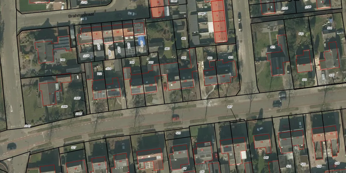 Gebruik de zoekbalk of klik op een perceel voor informatie over de adressen binnen dit perceel.