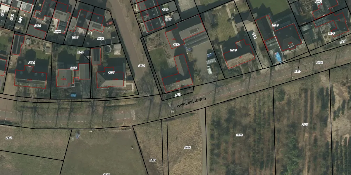 Helmondseweg 142 is gelegen op kadastraal perceel DNE00B2543. Deze kadastrale aanduiding is uniek en wordt gebruikt door het Kadaster om eigendomsrechten en andere zakelijke rechten vast te leggen. Het perceel maakt onderdeel uit van de kadastrale gemeente Deurne.