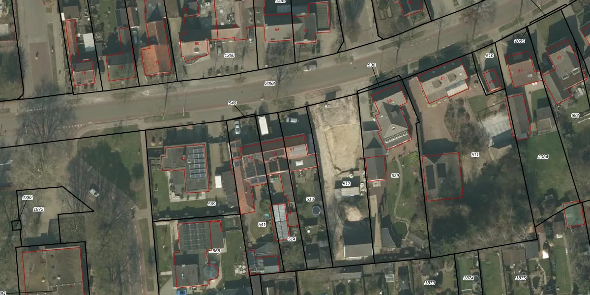 Het perceel waarop Helmondseweg 57 staat heeft een oppervlakte van 519 m². Dit is een groot perceel. De perceeloppervlakte wordt geregistreerd door het Kadaster. Gedetailleerde informatie over de maten van dit perceel kunt u vinden in het rapport Kadastrale kaart met maatvoering van Helmondseweg 57.