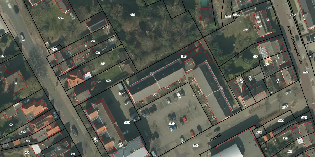 Het perceel waarop Heuvel 33 staat heeft een oppervlakte van 1905 m². Dit is een zeer groot perceel. De perceeloppervlakte wordt geregistreerd door het Kadaster. Gedetailleerde informatie over de maten van dit perceel kunt u vinden in het rapport Kadastrale kaart met maatvoering van Heuvel 33.