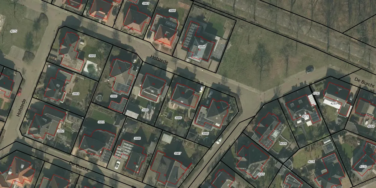 Het perceel waarop Hofstede 16 staat heeft een oppervlakte van 541 m². Dit is een groot perceel. De perceeloppervlakte wordt geregistreerd door het Kadaster. Gedetailleerde informatie over de maten van dit perceel kunt u vinden in het rapport Kadastrale kaart met maatvoering van Hofstede 16.