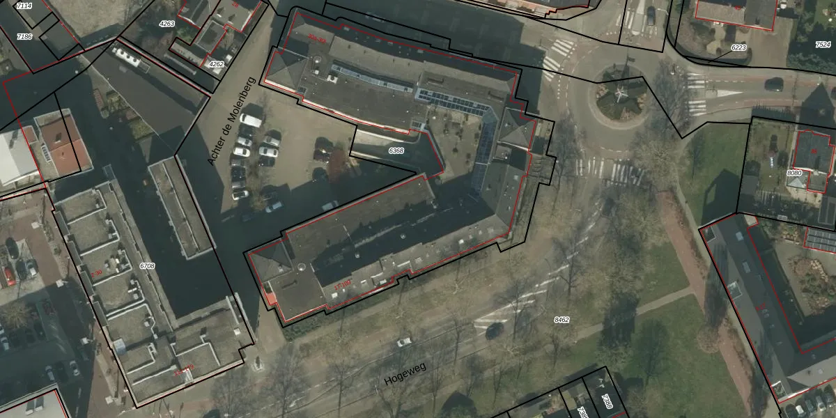 Het perceel waarop Hogeweg 43 staat heeft een oppervlakte van 3140 m². Dit is een zeer groot perceel. De perceeloppervlakte wordt geregistreerd door het Kadaster. Gedetailleerde informatie over de maten van dit perceel kunt u vinden in het rapport Kadastrale kaart met maatvoering van Hogeweg 43.