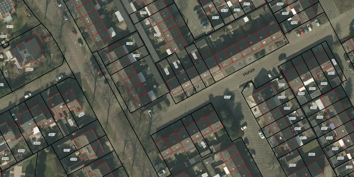 Hunze 1 is gelegen op kadastraal perceel DNE00L7082. Deze kadastrale aanduiding is uniek en wordt gebruikt door het Kadaster om eigendomsrechten en andere zakelijke rechten vast te leggen. Het perceel maakt onderdeel uit van de kadastrale gemeente Deurne.