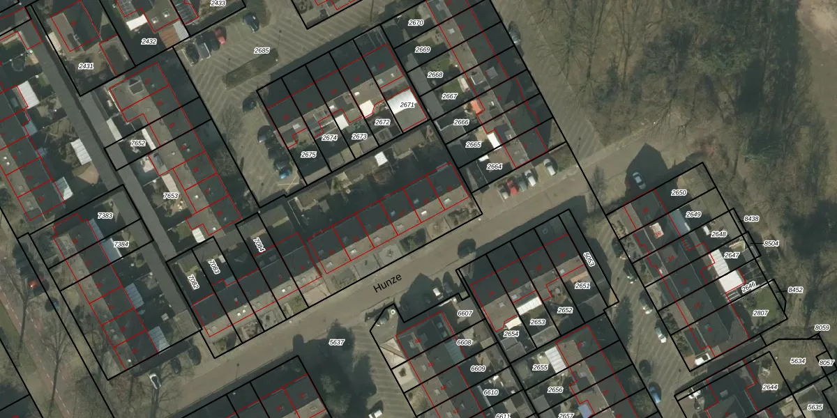 Het perceel waarop Hunze 19 staat heeft een oppervlakte van 4327 m². Dit is een zeer groot perceel. De perceeloppervlakte wordt geregistreerd door het Kadaster. Gedetailleerde informatie over de maten van dit perceel kunt u vinden in het rapport Kadastrale kaart met maatvoering van Hunze 19.