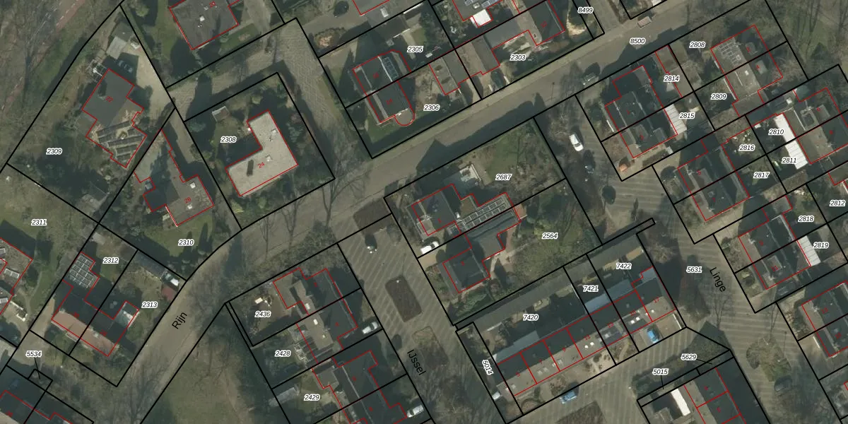 Het perceel waarop IJssel 1 staat heeft een oppervlakte van 655 m². Dit is een groot perceel. De perceeloppervlakte wordt geregistreerd door het Kadaster. Gedetailleerde informatie over de maten van dit perceel kunt u vinden in het rapport Kadastrale kaart met maatvoering van IJssel 1.