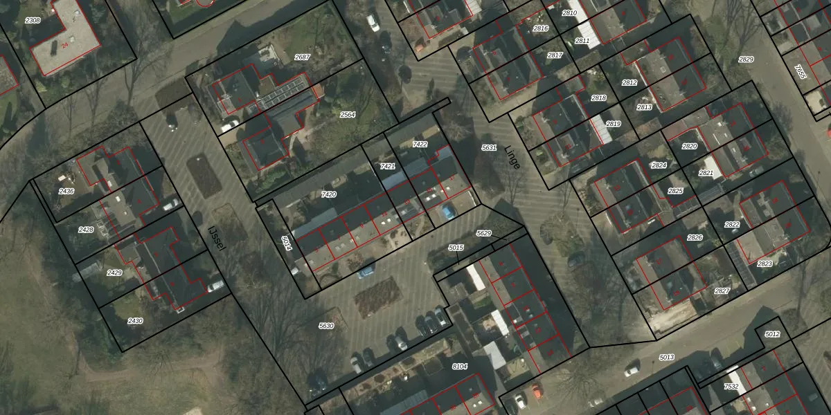 Gebruik de zoekbalk of klik op een perceel voor informatie over de adressen binnen dit perceel.