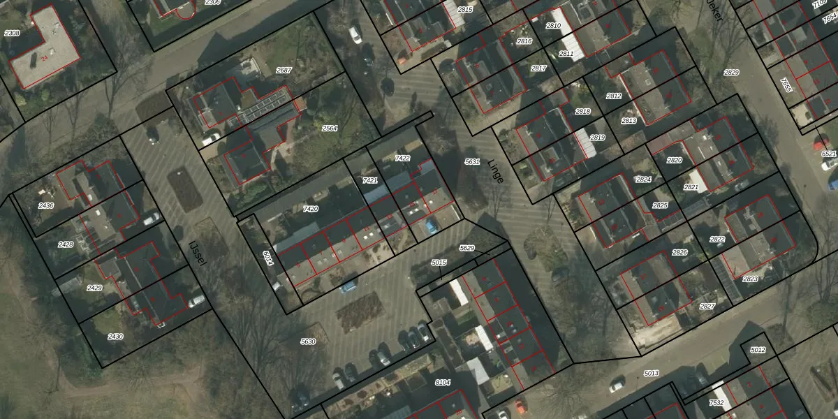 Het perceel waarop IJssel 15 staat heeft een oppervlakte van 345 m². Dit is een groot perceel. De perceeloppervlakte wordt geregistreerd door het Kadaster. Gedetailleerde informatie over de maten van dit perceel kunt u vinden in het rapport Kadastrale kaart met maatvoering van IJssel 15.