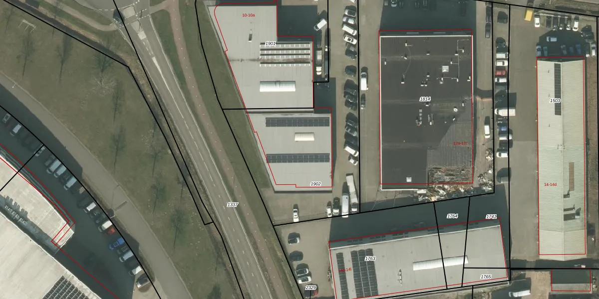 Het perceel waarop Industrieweg 10-a staat heeft een oppervlakte van 1870 m². Dit is een zeer groot perceel. De perceeloppervlakte wordt geregistreerd door het Kadaster. Gedetailleerde informatie over de maten van dit perceel kunt u vinden in het rapport Kadastrale kaart met maatvoering van Industrieweg 10-a.