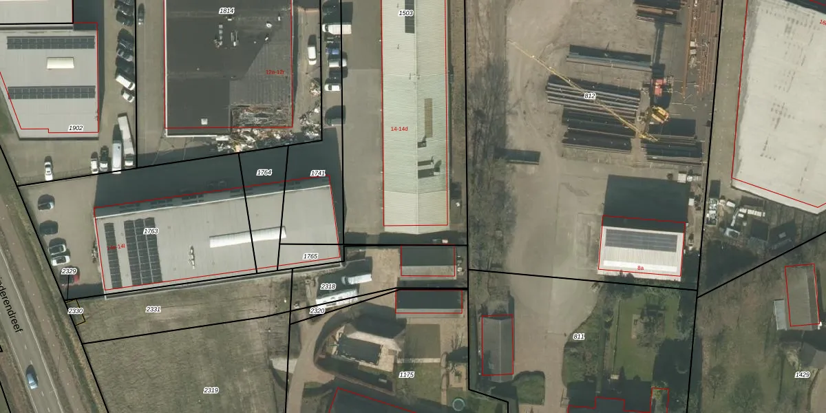 Het perceel waarop Industrieweg 14-d staat heeft een oppervlakte van 2584 m². Dit is een zeer groot perceel. De perceeloppervlakte wordt geregistreerd door het Kadaster. Gedetailleerde informatie over de maten van dit perceel kunt u vinden in het rapport Kadastrale kaart met maatvoering van Industrieweg 14-d.
