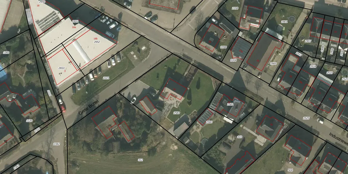 Het perceel waarop Industrieweg 20 staat heeft een oppervlakte van 1530 m². Dit is een zeer groot perceel. De perceeloppervlakte wordt geregistreerd door het Kadaster. Gedetailleerde informatie over de maten van dit perceel kunt u vinden in het rapport Kadastrale kaart met maatvoering van Industrieweg 20.