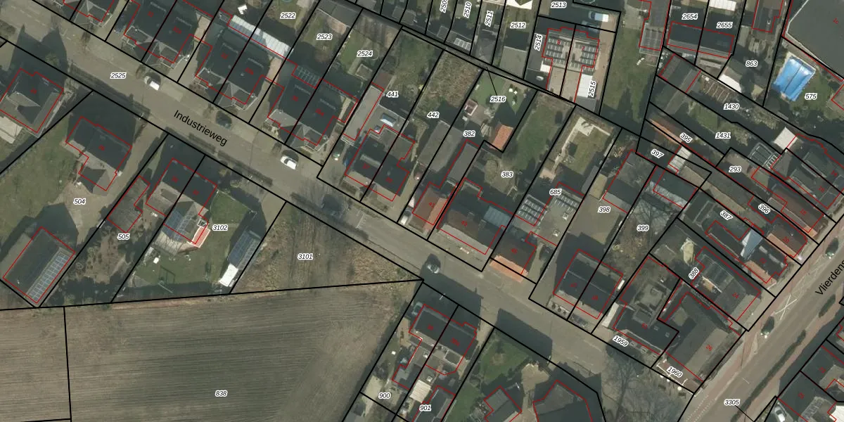 Het perceel waarop Industrieweg 41 staat heeft een oppervlakte van 442 m². Dit is een groot perceel. De perceeloppervlakte wordt geregistreerd door het Kadaster. Gedetailleerde informatie over de maten van dit perceel kunt u vinden in het rapport Kadastrale kaart met maatvoering van Industrieweg 41.