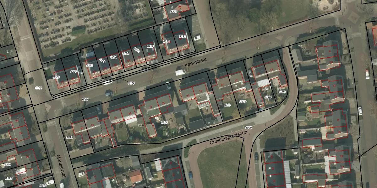 Het perceel waarop Irenestraat 23 staat heeft een oppervlakte van 1925 m². Dit is een zeer groot perceel. De perceeloppervlakte wordt geregistreerd door het Kadaster. Gedetailleerde informatie over de maten van dit perceel kunt u vinden in het rapport Kadastrale kaart met maatvoering van Irenestraat 23.