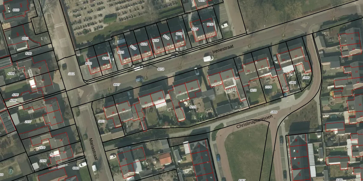 Het perceel waarop Irenestraat 27 staat heeft een oppervlakte van 1925 m². Dit is een zeer groot perceel. De perceeloppervlakte wordt geregistreerd door het Kadaster. Gedetailleerde informatie over de maten van dit perceel kunt u vinden in het rapport Kadastrale kaart met maatvoering van Irenestraat 27.