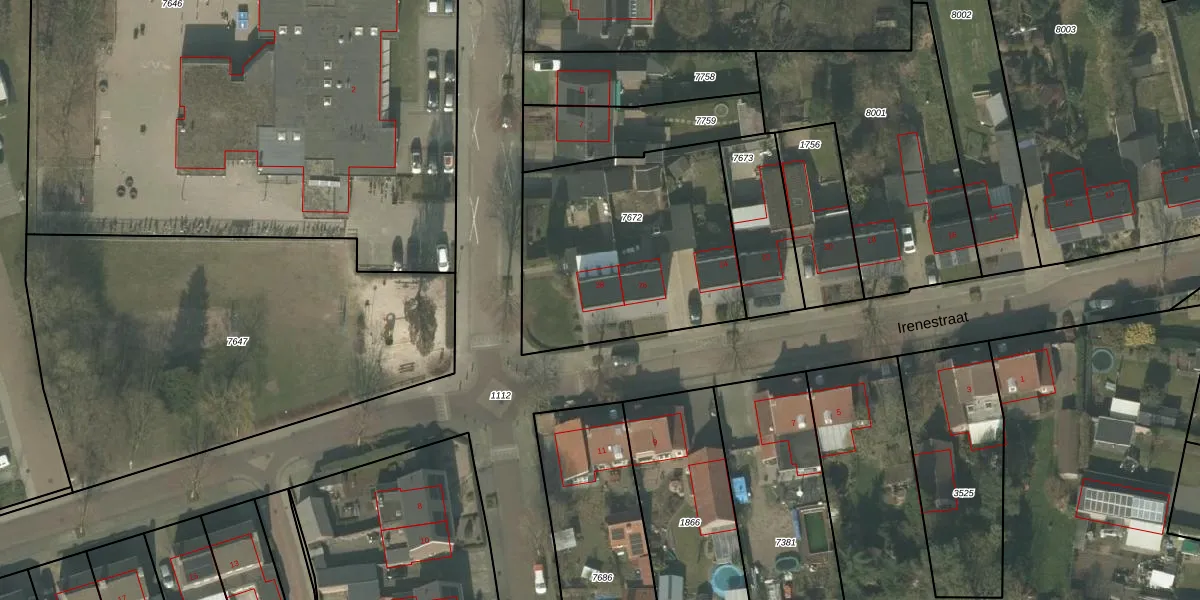 Het perceel waarop Irenestraat 28 staat heeft een oppervlakte van 1075 m². Dit is een zeer groot perceel. De perceeloppervlakte wordt geregistreerd door het Kadaster. Gedetailleerde informatie over de maten van dit perceel kunt u vinden in het rapport Kadastrale kaart met maatvoering van Irenestraat 28.