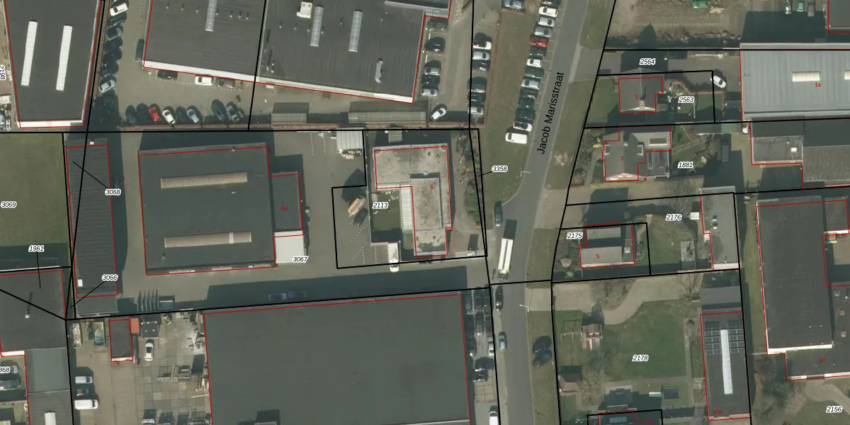 Jacob Marisstraat 6 is gelegen op kadastraal perceel DNE00N2113. Deze kadastrale aanduiding is uniek en wordt gebruikt door het Kadaster om eigendomsrechten en andere zakelijke rechten vast te leggen. Het perceel maakt onderdeel uit van de kadastrale gemeente Deurne.