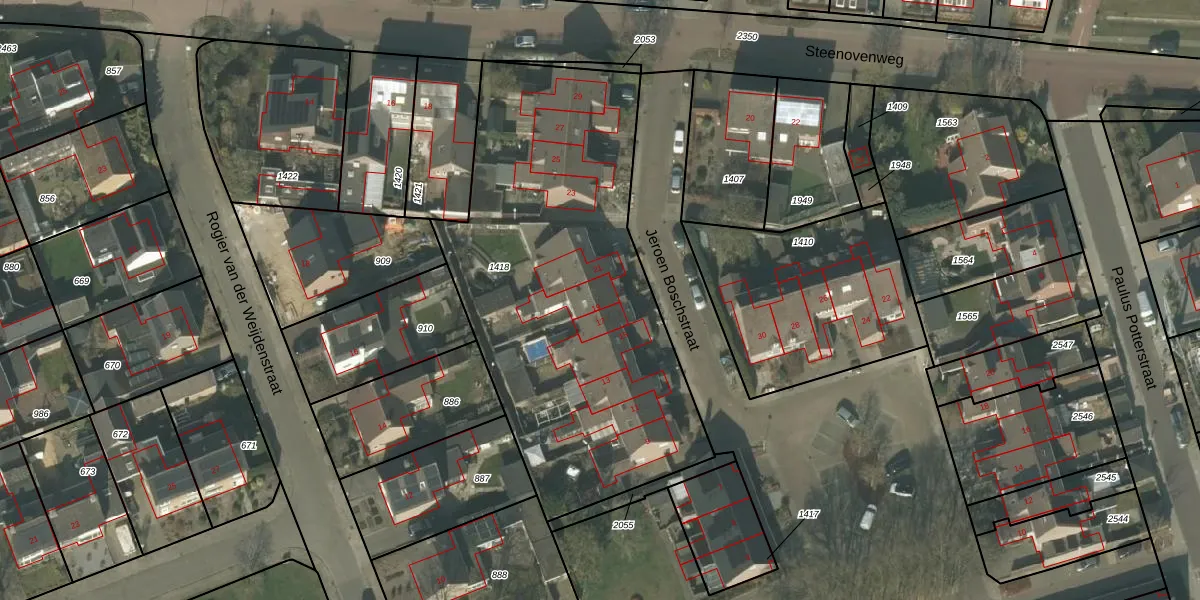 Het perceel waarop Jeroen Boschstraat 19 staat heeft een oppervlakte van 2110 m². Dit is een zeer groot perceel. De perceeloppervlakte wordt geregistreerd door het Kadaster. Gedetailleerde informatie over de maten van dit perceel kunt u vinden in het rapport Kadastrale kaart met maatvoering van Jeroen Boschstraat 19.