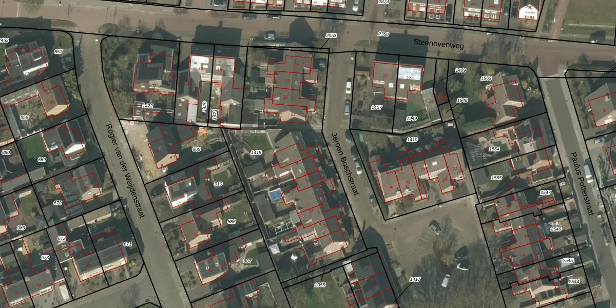 Het perceel waarop Jeroen Boschstraat 21 staat heeft een oppervlakte van 2110 m². Dit is een zeer groot perceel. De perceeloppervlakte wordt geregistreerd door het Kadaster. Gedetailleerde informatie over de maten van dit perceel kunt u vinden in het rapport Kadastrale kaart met maatvoering van Jeroen Boschstraat 21.