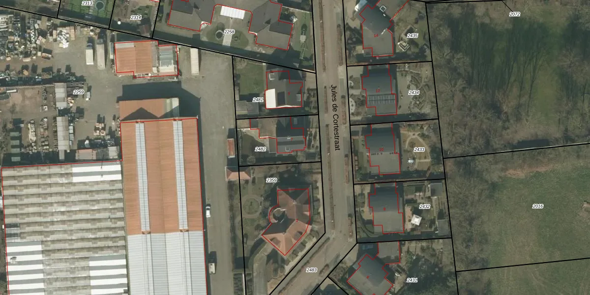 Jules de Cortestraat 7 is gelegen op kadastraal perceel DNE00B2482. Deze kadastrale aanduiding is uniek en wordt gebruikt door het Kadaster om eigendomsrechten en andere zakelijke rechten vast te leggen. Het perceel maakt onderdeel uit van de kadastrale gemeente Deurne.