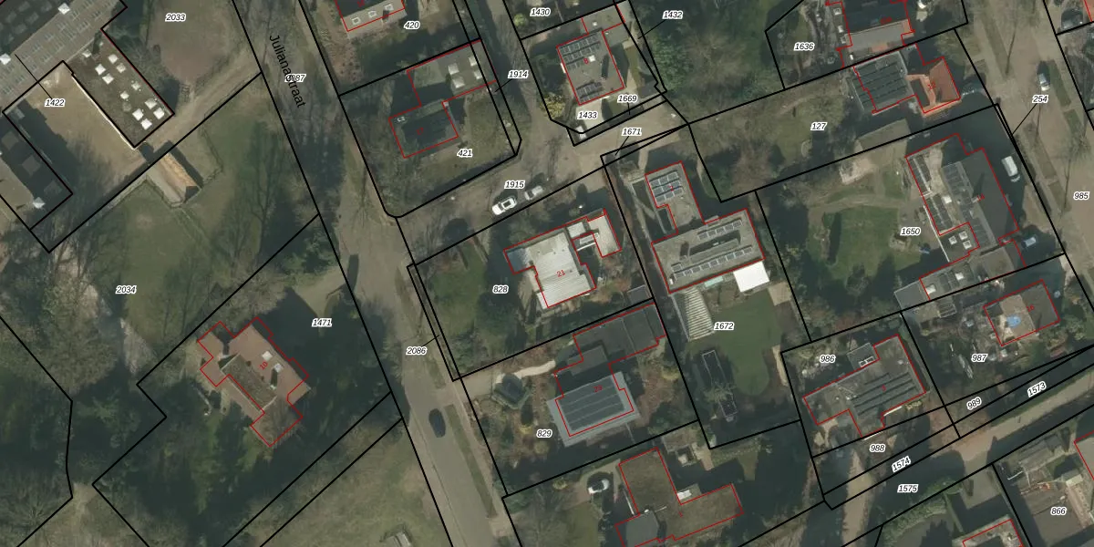 Gebruik de zoekbalk of klik op een perceel voor informatie over de adressen binnen dit perceel.