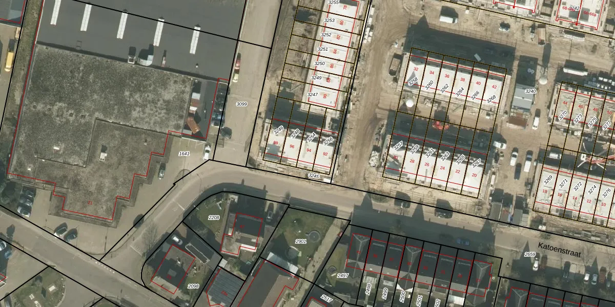 Katoenstraat 94 is gelegen op kadastraal perceel DNE00N3254. Deze kadastrale aanduiding is uniek en wordt gebruikt door het Kadaster om eigendomsrechten en andere zakelijke rechten vast te leggen. Het perceel maakt onderdeel uit van de kadastrale gemeente Deurne.