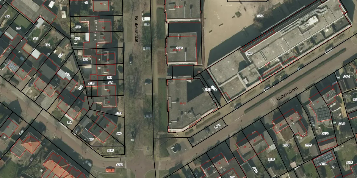 Keltenstraat 40 is gelegen op kadastraal perceel DNE00N2490. Deze kadastrale aanduiding is uniek en wordt gebruikt door het Kadaster om eigendomsrechten en andere zakelijke rechten vast te leggen. Het perceel maakt onderdeel uit van de kadastrale gemeente Deurne.