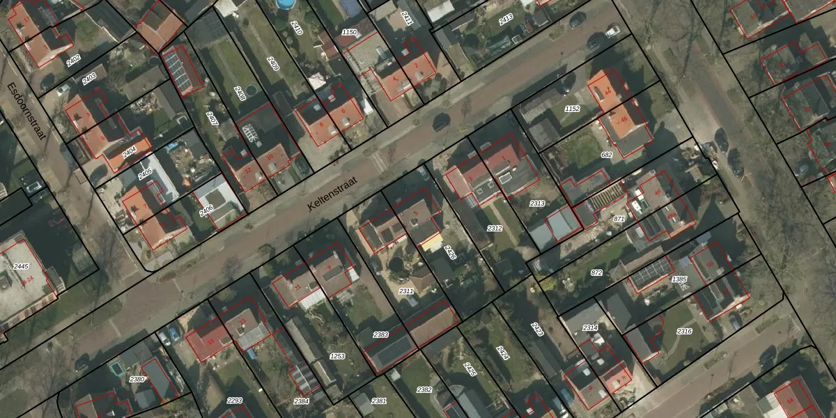 Keltenstraat 5 is gelegen op kadastraal perceel DNE00N2426. Deze kadastrale aanduiding is uniek en wordt gebruikt door het Kadaster om eigendomsrechten en andere zakelijke rechten vast te leggen. Het perceel maakt onderdeel uit van de kadastrale gemeente Deurne.