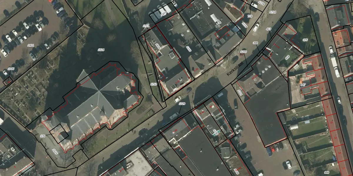 Het perceel waarop Kerkstraat 1-a staat heeft een oppervlakte van 529 m². Dit is een groot perceel. De perceeloppervlakte wordt geregistreerd door het Kadaster. Gedetailleerde informatie over de maten van dit perceel kunt u vinden in het rapport Kadastrale kaart met maatvoering van Kerkstraat 1-a.