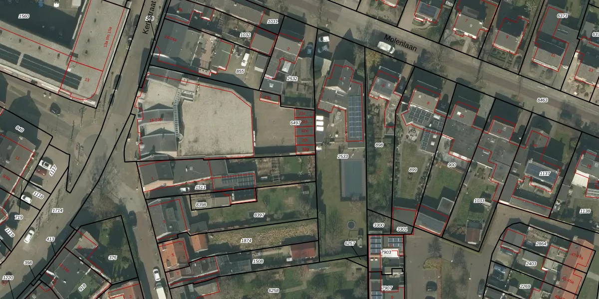 Het perceel waarop Kerkstraat 22-g staat heeft een oppervlakte van 1490 m². Dit is een zeer groot perceel. De perceeloppervlakte wordt geregistreerd door het Kadaster. Gedetailleerde informatie over de maten van dit perceel kunt u vinden in het rapport Kadastrale kaart met maatvoering van Kerkstraat 22-g.