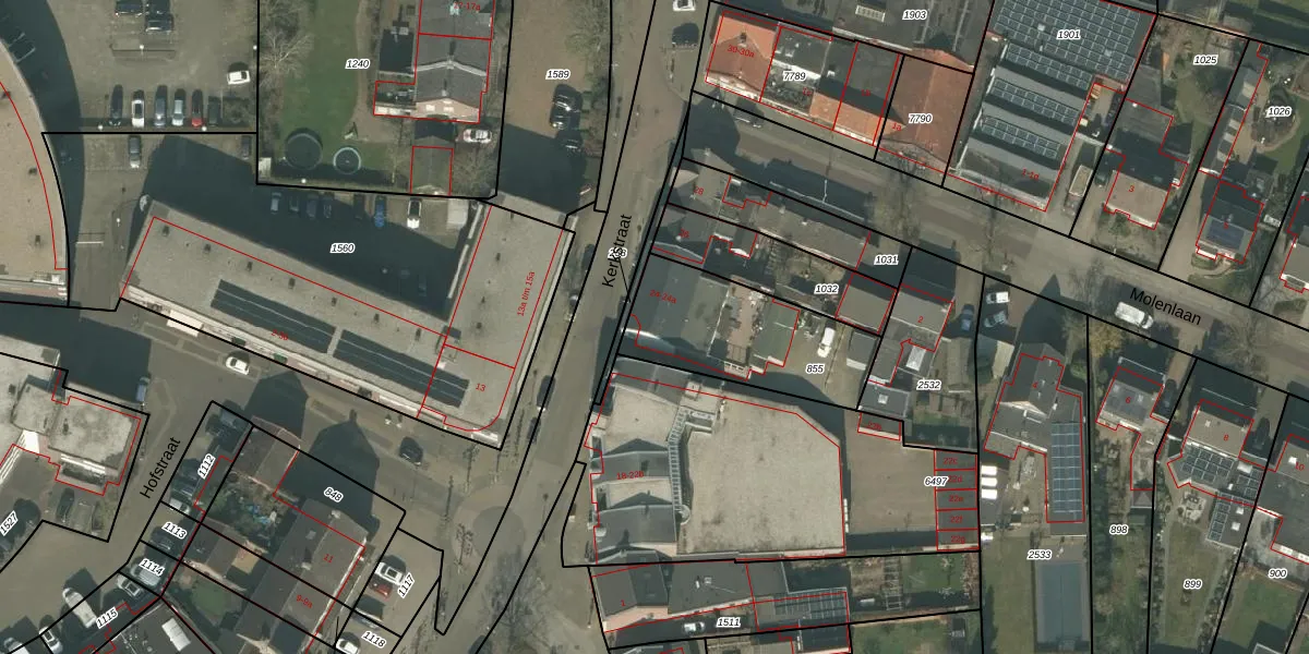 Het perceel waarop Kerkstraat 24 staat heeft een oppervlakte van 534 m². Dit is een groot perceel. De perceeloppervlakte wordt geregistreerd door het Kadaster. Gedetailleerde informatie over de maten van dit perceel kunt u vinden in het rapport Kadastrale kaart met maatvoering van Kerkstraat 24.