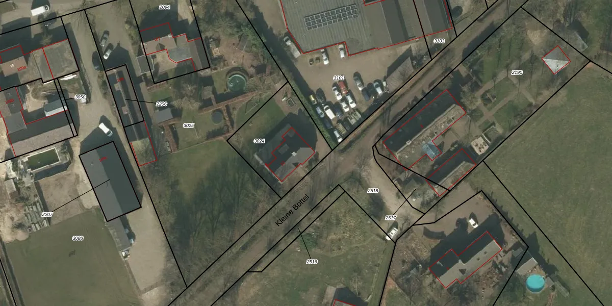 Kleine Bottel 32 is gelegen op kadastraal perceel DNE00B3024. Deze kadastrale aanduiding is uniek en wordt gebruikt door het Kadaster om eigendomsrechten en andere zakelijke rechten vast te leggen. Het perceel maakt onderdeel uit van de kadastrale gemeente Deurne.