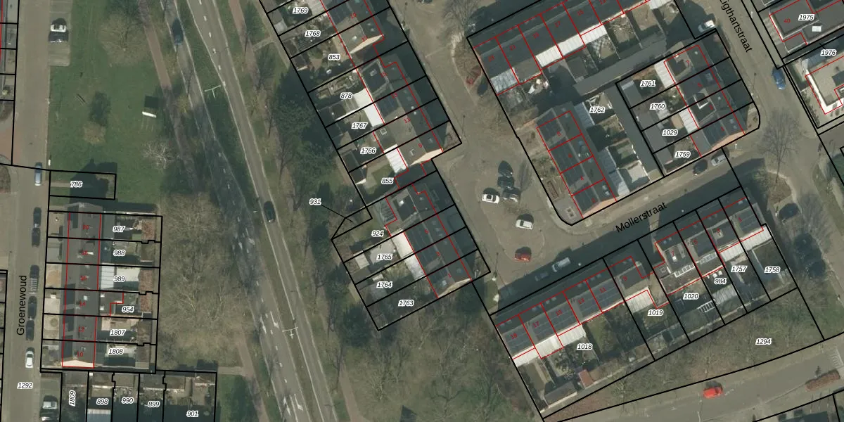 Gebruik de zoekbalk of klik op een perceel voor informatie over de adressen binnen dit perceel.