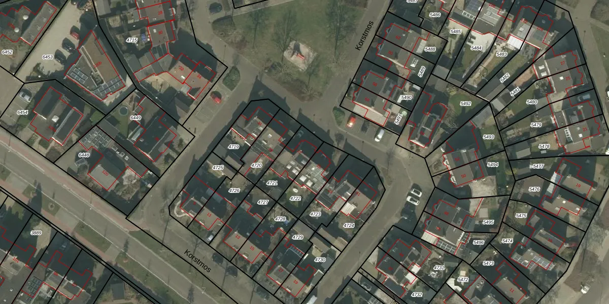 Het perceel waarop Korstmos 27 staat heeft een oppervlakte van 225 m². Dit is een middelgroot perceel. De perceeloppervlakte wordt geregistreerd door het Kadaster. Gedetailleerde informatie over de maten van dit perceel kunt u vinden in het rapport Kadastrale kaart met maatvoering van Korstmos 27.