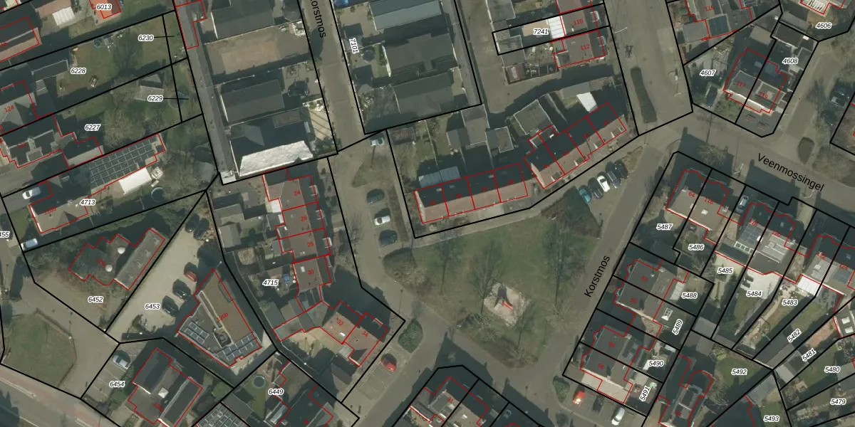 Het perceel waarop Korstmos 33 staat heeft een oppervlakte van 2628 m². Dit is een zeer groot perceel. De perceeloppervlakte wordt geregistreerd door het Kadaster. Gedetailleerde informatie over de maten van dit perceel kunt u vinden in het rapport Kadastrale kaart met maatvoering van Korstmos 33.